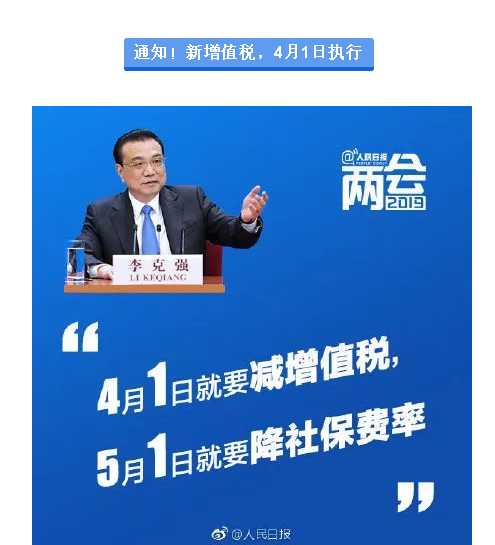 關(guān)于增值稅新稅率執(zhí)行時間,剛剛總理正式通知!增值稅稅率16%降13%,10%降9%,6%擴抵。4月1日起正式開始執(zhí)行!以后開發(fā)票要有大變化了。