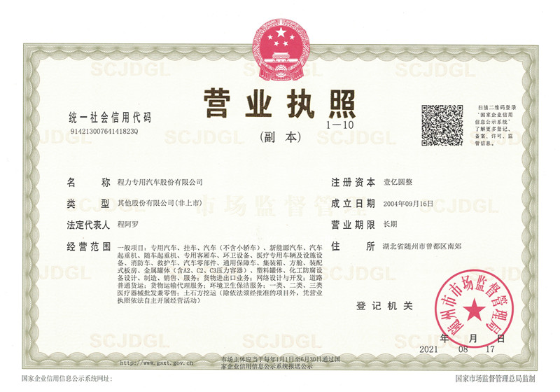 程力最新營業執照,程力專用汽車股份有限公司營業執照,程力新版營業執照,湖北程力汽車營業執照程力汽車官網:www.hrht123.com.cn,程力專汽政府和事業單位專用汽車…