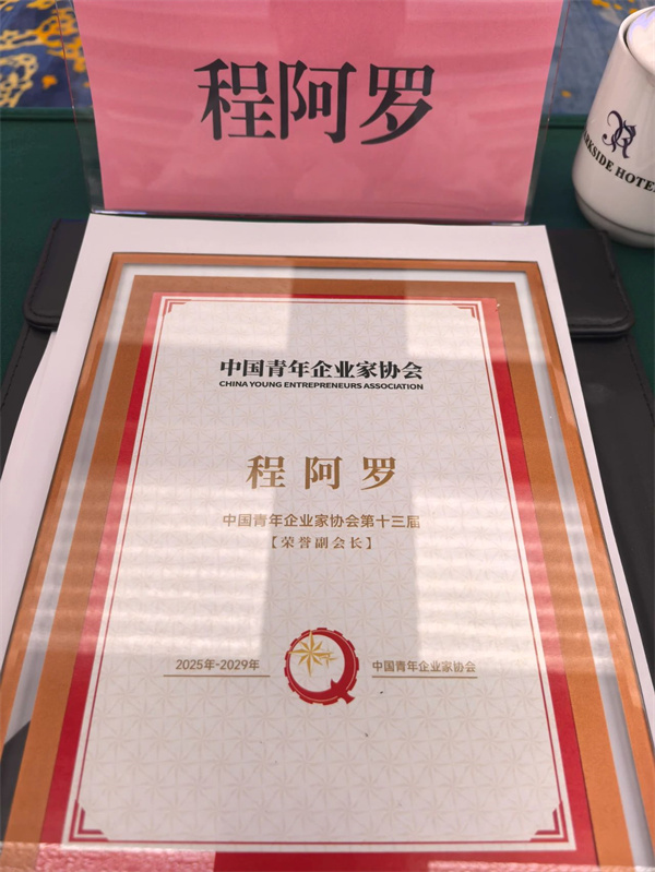 中國青年企業(yè)家協(xié)會授予程力汽車集團(tuán)董事長程阿羅為中國青年企業(yè)家協(xié)會榮譽(yù)副會長