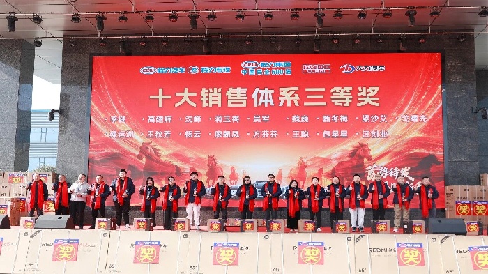 程力的每一步發(fā)展,都離不開合作伙伴的鼎力支持與攜手同行。接下來頒發(fā)的是“最佳供應(yīng)商”獎項,此榮譽(yù)授予在物料品質(zhì)、交付效率、合作協(xié)同中表現(xiàn)優(yōu)異的合作伙伴,他們是程力產(chǎn)業(yè)鏈上的重要伙伴,更是集團(tuán)高質(zhì)量發(fā)展的堅實后盾。 銷售與經(jīng)營齊飛,服務(wù)攜創(chuàng)新共贏! 銷售與經(jīng)營體系表彰重磅登場。從金牌跟單員到十大銷售體系各獎項,從經(jīng)營激勵獎、進(jìn)步獎到貢獻(xiàn)獎,階梯式榮譽(yù)與豐厚獎品——米家冰箱、空氣炸鍋、REDMI電視、筆記本電腦乃至出國游,充分彰顯集團(tuán)以績論獎、重獎功臣的鮮明導(dǎo)向,激勵全員勇攀業(yè)績高峰。