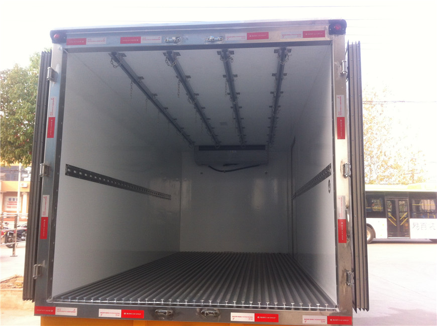 二,保溫箱體 湖北程力冷藏車的質(zhì)量好不好一般因素是看箱體的質(zhì)量,好的冷藏車箱體不漏熱,質(zhì)量輕,箱體結(jié)實(shí)不變形起泡。湖北程力公司自主研發(fā)的冷藏車第五代產(chǎn)品融合:"無(wú)縫結(jié)合箱體技術(shù)”,“全自動(dòng)恒溫系統(tǒng)”,“全方位冷藏車監(jiān)控系統(tǒng)”,“全球冷凍數(shù)據(jù)回饋技術(shù)”,箱體填充除了保留傳統(tǒng)的“高密度聚氨酯”外,新增“航空材質(zhì)高密度玻璃纖維”。廂板為三明治式結(jié)構(gòu),內(nèi)外蒙皮,中間輕鋼龍骨架及8厘米高密度聚氨酯保溫材料,采用國(guó)際先進(jìn)的大型真空負(fù)壓機(jī)一次性負(fù)壓成型,表面光潔平整,強(qiáng)度高,整體質(zhì)量輕,保溫性能良好,無(wú)滲漏。箱體內(nèi)外蒙皮可根據(jù)用戶的實(shí)際需求選用玻璃鋼板,鋁合金板,彩鋼板,不銹鋼板等材質(zhì)制作。用戶也可以根據(jù)運(yùn)輸介質(zhì)的不同選裝滑道,肉鉤,通風(fēng)槽,側(cè)開(kāi)門等。
