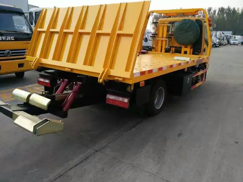上裝標配花紋板和壓制板兩種。隨車配綁帶4根,L型托叉壹對,4T卷揚,20m的鋼絲繩。警燈一套,底盤合格證,保修手冊,整車合格證,整車票,整車說明書,及隨車工具一套,顏色可選。