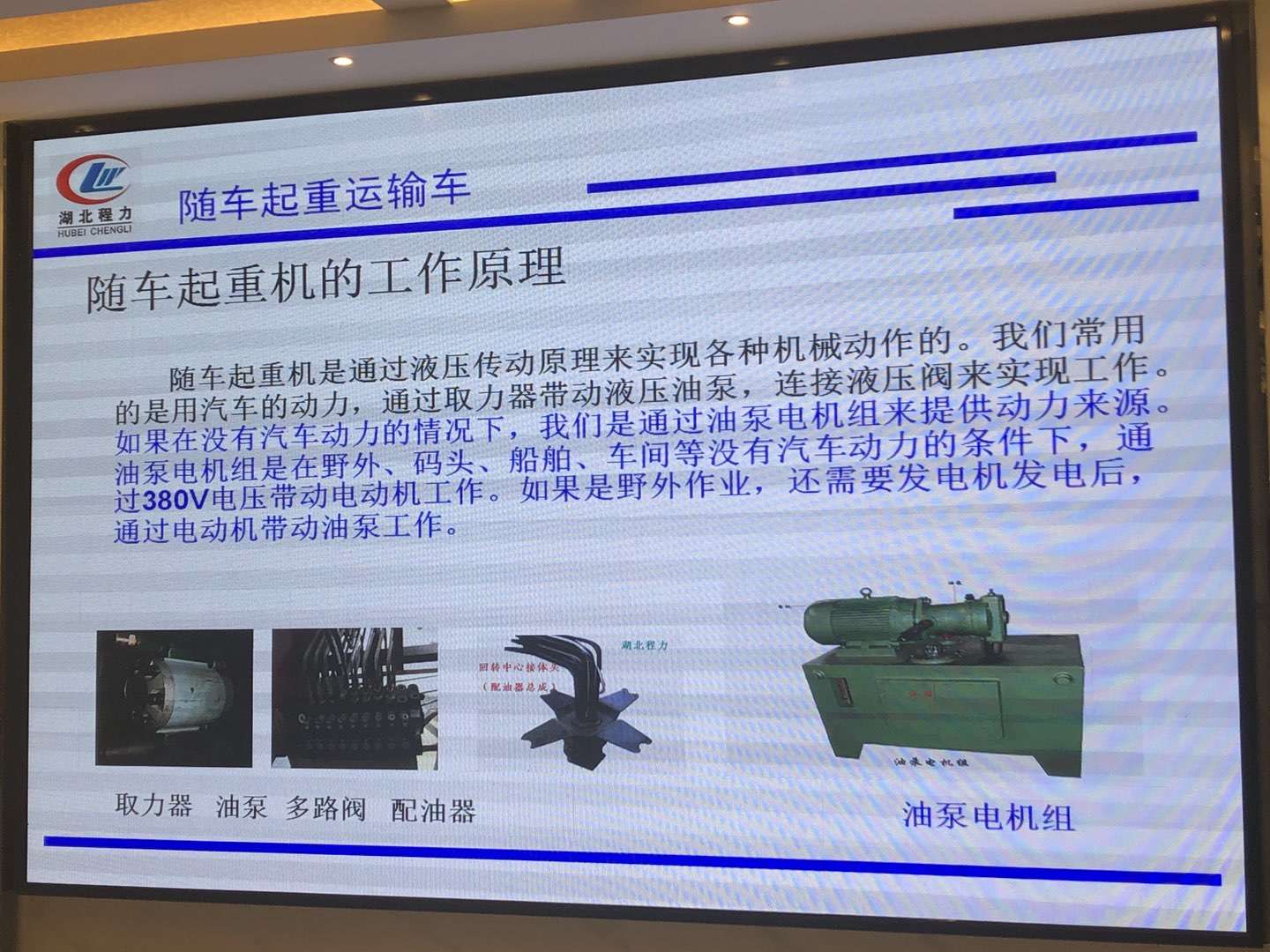 光陰似箭,歲月如梭,在忙碌中我們不知不覺地送走了一年。 湖北程力隨車吊專業廠告別了成績斐然的2017,迎來了充滿希望的2018,值此新年(新春)到來之際,我們在此給大家拜年了:然而,公司的每一點進步都離不開全體員工的共同努力。 湖北程力隨車吊的組成以及用途和特點簡介: 一般由載貨汽車底盤、貨廂、取力器、吊機組成。 用途