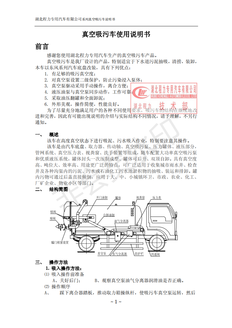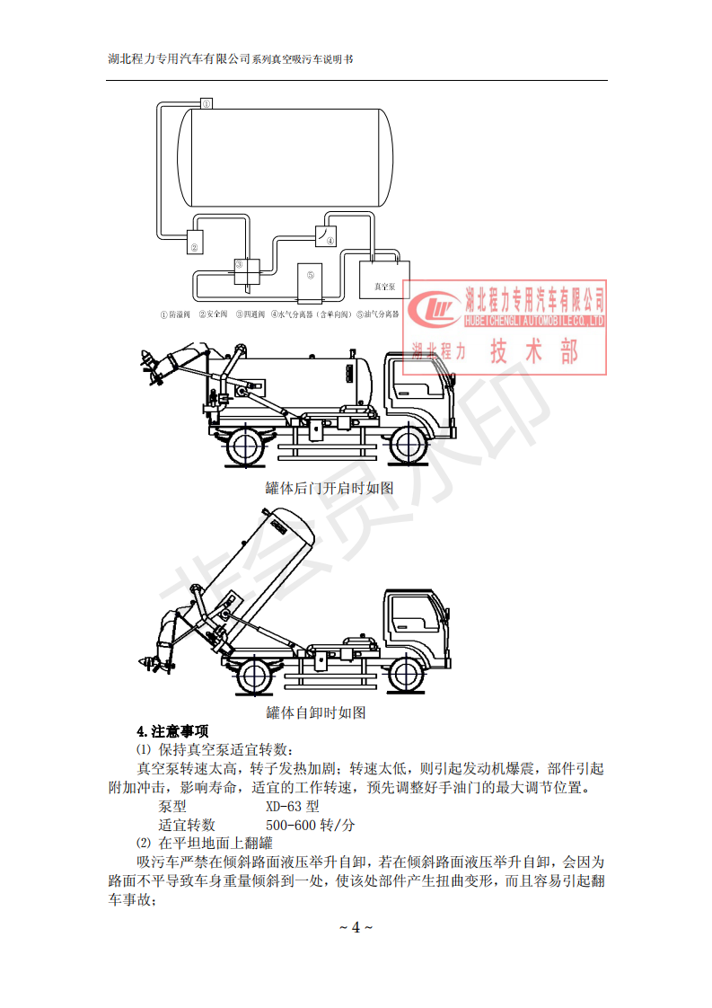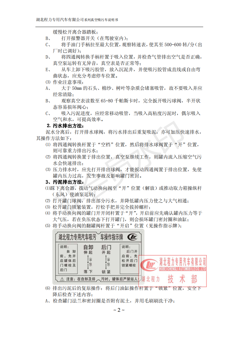 湖北程力環衛吸糞吸污車使用說明書(吸污車如何操作和注意事項)