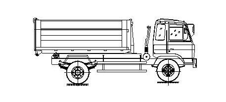 步驟3.當(dāng)拉臂鉤鉤到箱體彎鉤時(shí),繼續(xù)推下拉臂操作手柄到落下位置,使垃圾箱體繼續(xù)上車(注意:保證垃圾箱體的縱梁位于附車架尾部?jī)珊鬂L輪之間);如圖: