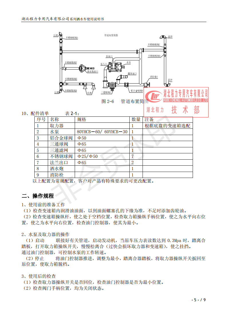 湖北程力灑水車(chē)操作說(shuō)明書(shū)