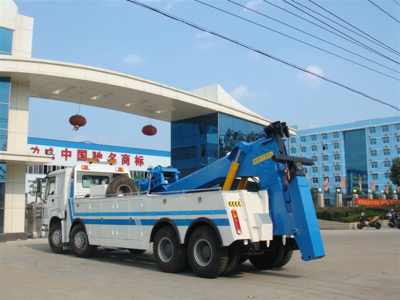二節(jié)六邊型吊臂,三節(jié)托臂(連桿、雙鉸點型),分體式車廂,雙側(cè)聯(lián)動操作裝置,搖控操作裝置一套,前保險扛有配重,后工作燈3只,2個150KN液壓絞盤(55米鋼絲繩),1個洗手箱,U型抱胎裝置1套,托叉5對,托叉座1對,鏈鉤2條,1個長排工程警燈(LED),輔助燈總成1套,輔助制動氣管總成1套。