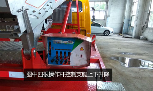 H型支腿操作桿,車板尾部兩邊的的四個(gè)操作桿控制支腿內(nèi)外伸縮。