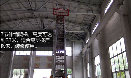 7節(jié)伸縮爬梯,高度可達(dá)到28米,適合高層樓房搬家、裝修使用。爬梯頂部安裝滑輪,適合貼墻升高時(shí)使用。云梯采用韓國進(jìn)口技術(shù),部分部件采用韓國原廠整裝進(jìn)口!包括液壓系統(tǒng),油路管件都是韓國原廠提供。