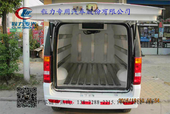 1.底盤配置:采用東風小康汽車有限公司EQ5026XXYF1整車面包車身,配置重慶小康動力有限公司DK15-09汽油發動機,109馬力,國五排放標準,5檔變速箱,有動力轉向,駕駛室原廠空調,軸距3050mm,總質量1970kg,2人座位額載530,5人座位335kg,整備1310kg。 2.上裝配置:冷藏廂內部有效容積3.6立方,廂體蒙皮內玻璃鋼,外不銹鋼,花紋鋁底板,8cm聚氨酯保溫,不銹鋼門鎖件,配后雙開門,安裝-18度制冷機組可選。 3.其他說明:該款面包冷藏車有2人座位和5人座位兩種,非常適合做藥品,疫苗冷藏運輸車,錫膏,熟食等城市冷鏈快遞等用途,適合城市與機場對接冷鏈快運,最高時速高達135公里每小時