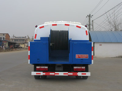 92 | ★ 高壓清洗車又名管道疏通車、清洗車,是多功能下水道清洗疏通機械,主要用于清洗城市下水道、管道的沉積物、死角泥溝的疏通,也可用于清洗工業排液管道、壁面等,并可兼作灑水、運水和沖洗公路用,緊急時可用于救火。 ★ 可加裝灑水裝置,安裝綠化灑水炮、前沖、后灑、側噴,可進行綠化灑水、噴霧、壓塵、高壓沖洗路面等。具有壓力高、節約水、作業時間長、清洗效果好的特點。還可加裝吸污功能,集清洗、吸污于一體。 高壓清洗車是在二類原裝底盤的基礎上加以改裝而成,上裝部分為罐體,配置高壓水泵工作。噴水架清洗寬度2.5m-3.5m,可任意控制,當伸縮噴桿收縮時,可實現雙重水流強化清洗,適用于清洗城市道路、廣場;.左、右角噴適用于清洗路緣、護欄隔離帶、人行道等。