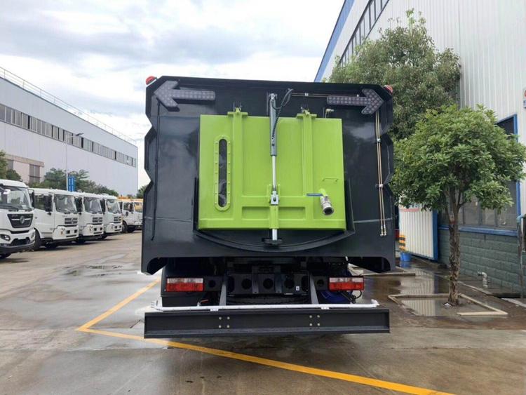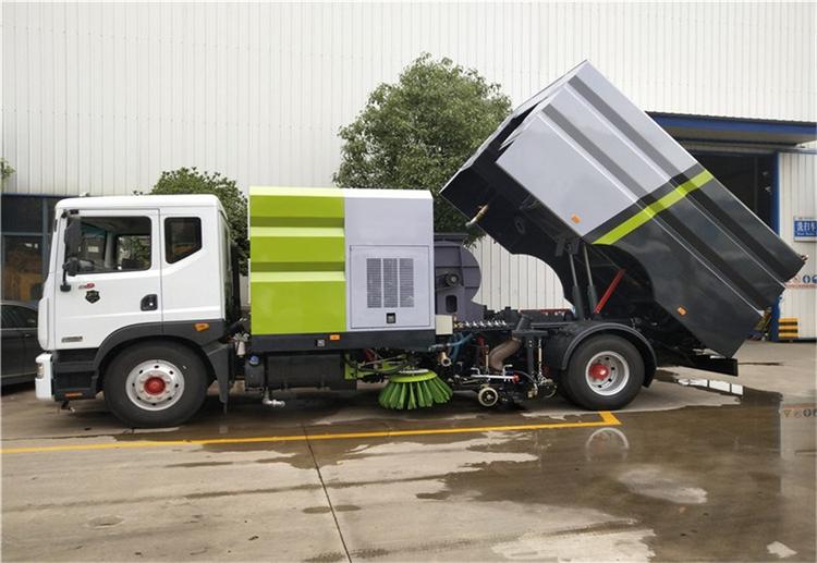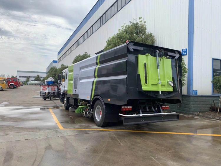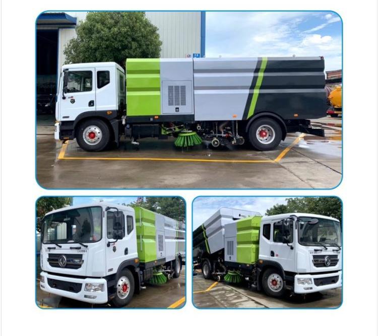 湖北程力東風(fēng)D9洗掃車(國(guó)六) 底盤配置: 采用東風(fēng)D9系列新款駕駛室,3950mm軸距,搭載國(guó)六(國(guó)VI)玉柴200馬力柴油發(fā)動(dòng)機(jī)/康明斯210匹馬力柴油發(fā)動(dòng)機(jī),6檔變速箱,9T后橋,295真空胎,方向助力、斷氣剎、電動(dòng)窗、中控鎖、ABS,原裝空調(diào),GB7258新規(guī)。 湖北程力東風(fēng)D9洗掃車(國(guó)六)上裝配置: 帶2個(gè)中置掃盤;中置超寬吸嘴;雙層吸塵筒; 康明斯170馬力副發(fā)動(dòng)機(jī);臺(tái)灣液壓閥;大力馬達(dá);德國(guó)高壓水泵 (前沖/側(cè)噴/中噴/后噴霧)/側(cè)沖洗水槍/垃圾箱自潔裝置); 萬(wàn)向高壓路沿清洗;威龍低壓泵(前沖),氣動(dòng)球閥控制; 4mm不銹鋼垃圾箱;不銹鋼水箱;德國(guó)控制器;尾部箭頭燈; 機(jī)油、垃圾箱、水箱均帶防溢或低位報(bào)警裝置;倒車及洗掃狀態(tài)室內(nèi)監(jiān)視器; 多種語(yǔ)音提示;倒車自動(dòng)保護(hù)、防傾倒垃圾翻車保護(hù)、檢修安全保護(hù); 20m高壓沖洗卷盤;刷臂轉(zhuǎn)動(dòng)機(jī)構(gòu)使用德國(guó)進(jìn)口高新耐磨工程隔套,免打黃油; 冷彎無(wú)縫液壓油管;運(yùn)動(dòng)控制器一鍵電腦控制。洗掃寬度3.5m;吸入粒度p110mm。 湖北程力東風(fēng)D9洗掃車(國(guó)六)多方位圖片: