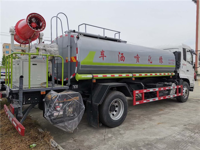 東風(fēng)天錦12噸30米霧炮車亮點(diǎn): 底盤配置:采用原裝東風(fēng)天錦底盤,軸距4700或者5000,國(guó)六康明斯210馬力發(fā)動(dòng)機(jī),東風(fēng)6檔變速箱,900R20鋼絲胎帶備胎,氣剎,斷氣剎,方向助力,離合助力,原裝空調(diào),電動(dòng)玻璃,中控鎖,東風(fēng)原廠4通道ABS。改裝配置:采用4mm國(guó)標(biāo)碳鋼板縱縫焊接一次卷制成型,罐內(nèi)設(shè)防浪隔板防止水浪沖擊,有效容積12-14立方可選,配60/90大功率灑水泵,管道采用大口徑無(wú)縫鋼管+大口徑球閥,標(biāo)配14米前沖,后灑側(cè)噴功能,35米平臺(tái)水炮,后平臺(tái)加裝30米霧炮機(jī)及8.5KW柴油專用副發(fā)電機(jī)。 霧炮機(jī)參數(shù):射程30米,風(fēng)機(jī)電機(jī)3KW,水泵電機(jī)3KW,噴霧流量20L/min,工作壓力1.5-3.5MPa,霧粒度50-150微米,360°水平旋轉(zhuǎn),-10~45°上下俯仰角度,手動(dòng)+遙控控制,霧炮機(jī)尺寸:1300*700*1600mm 湖北程力國(guó)六東風(fēng)天錦12方-14方綠化噴灑車|霧炮抑塵車|灑水車程力威牌CLW5161GPS6WL型綠化噴灑車CLW5180GPSE6型綠化噴灑車圖片價(jià)格: